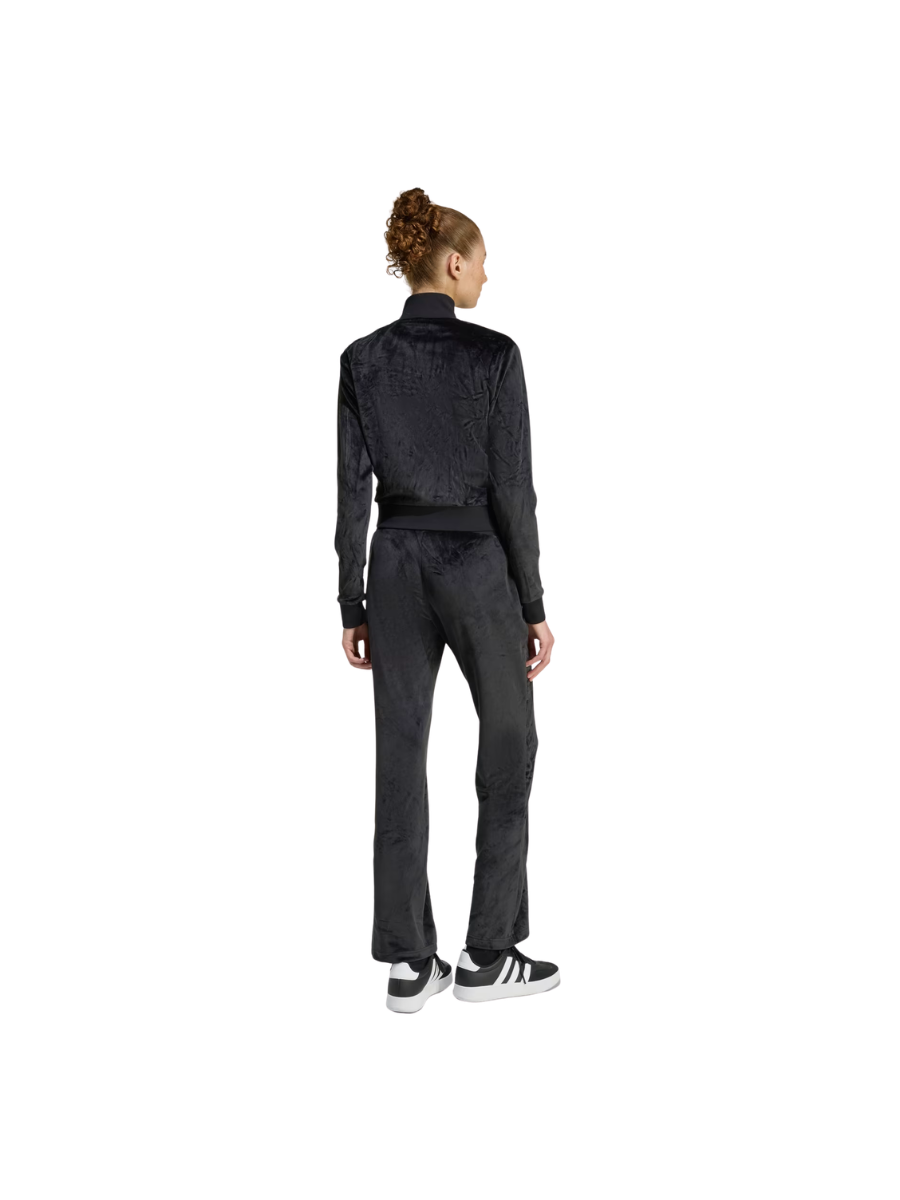 Designed for those who embrace a relaxed yet chic lifestyle, the Glam Velvet Tracksuit offers both comfort and style. Feel cosy with no compromise on style as you relax at home during the colder months. The super-soft fabric wraps you in warmth, while the mid-rise waist and flared hem offer a stylish silhouette that pairs effortlessly with your favourite fashion items. Our embossed linear logo adds a touch of adidas elegance. This on-trend tracksuit is a great way to settle in for the winter as you go about your daily life. Embrace the fit and feel in this statement set.