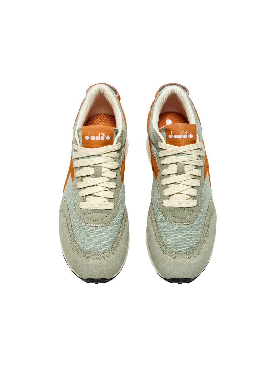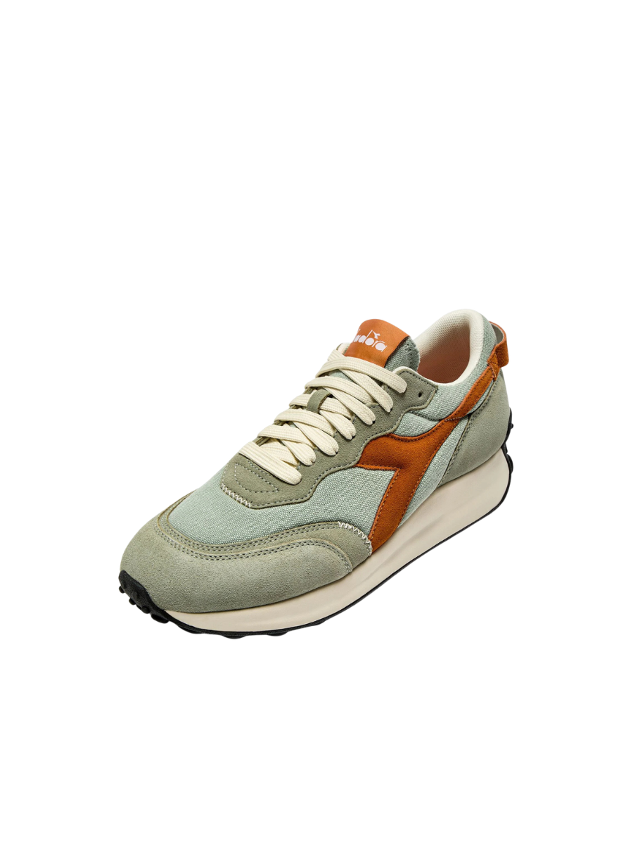 Race Suede SW, a classic running shoe from the 80s, makes a comeback to celebrate diadora’s sporting heritage. The sole faithfully replicates the original version, while the upper is revamped with a more contemporary style. The canvas on the quarter and vamp is finished with waxing, giving it a captivating worn effect.