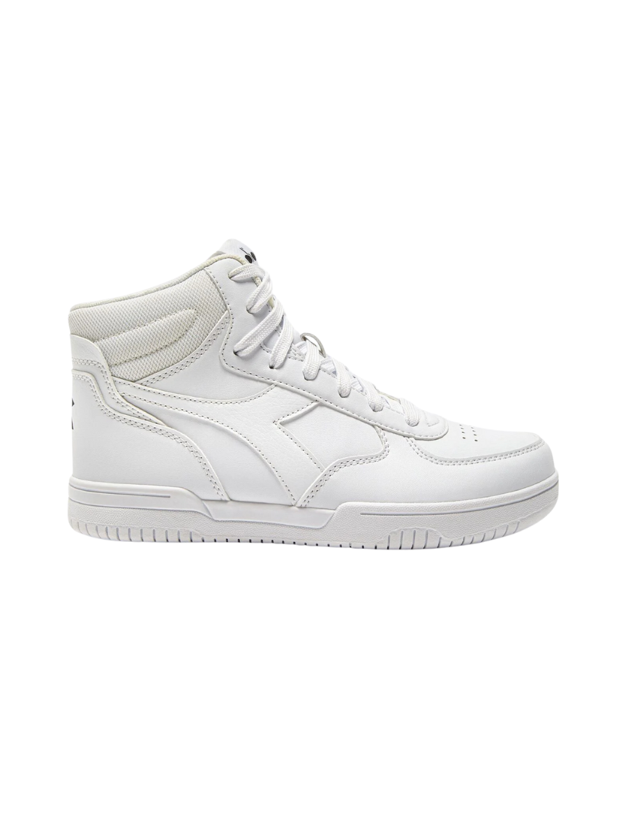 Faux leather kid’s trainers with a zip fastening. The Raptor MID GS style features the contrasting fregio and fabric collar, just like the adult version.