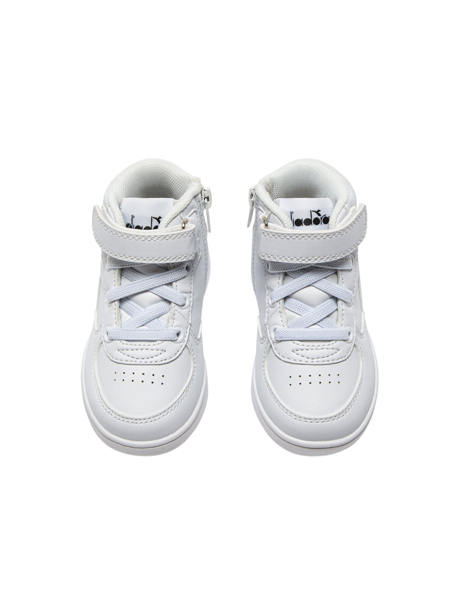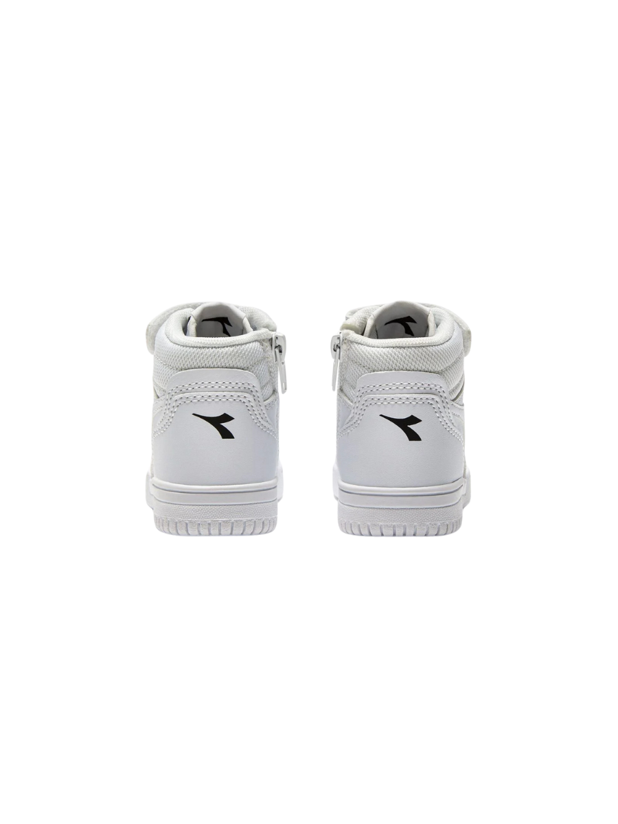 Faux leather kid’s trainers with a zip fastening. The Raptor MID TD style features the contrasting fregio and fabric collar, just like the adult version.