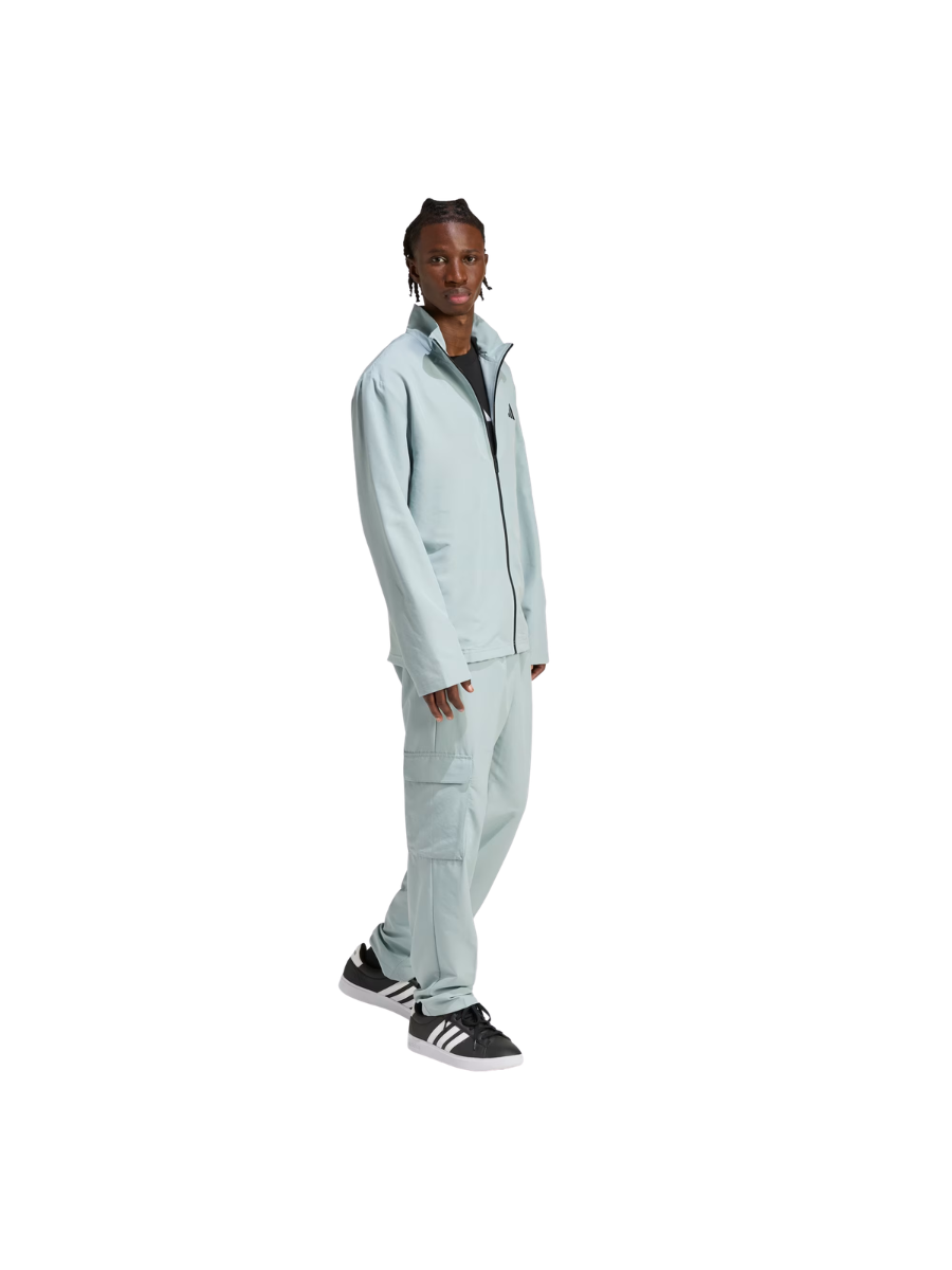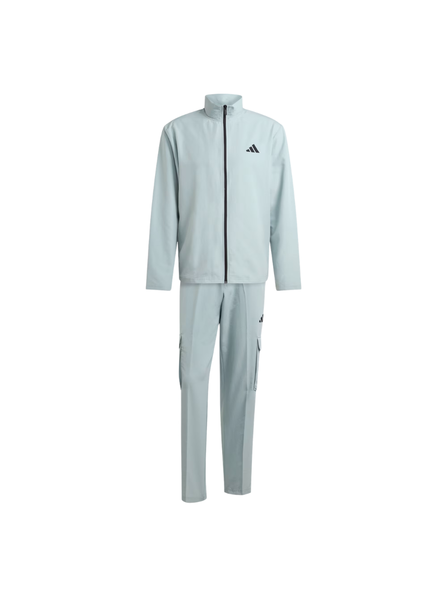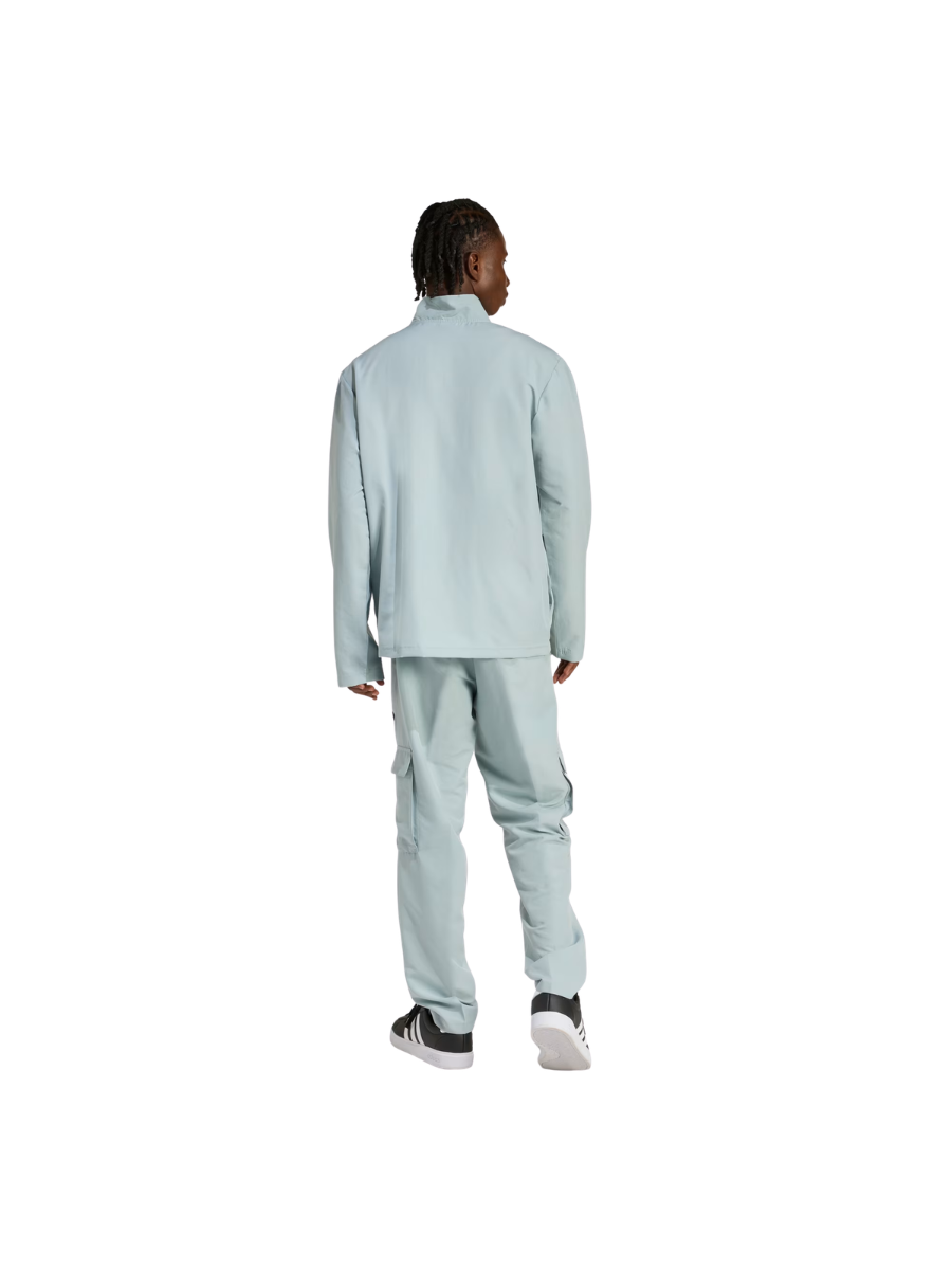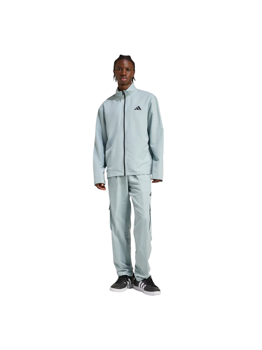 Woven cargo tracksuit with zip closure for versatility.