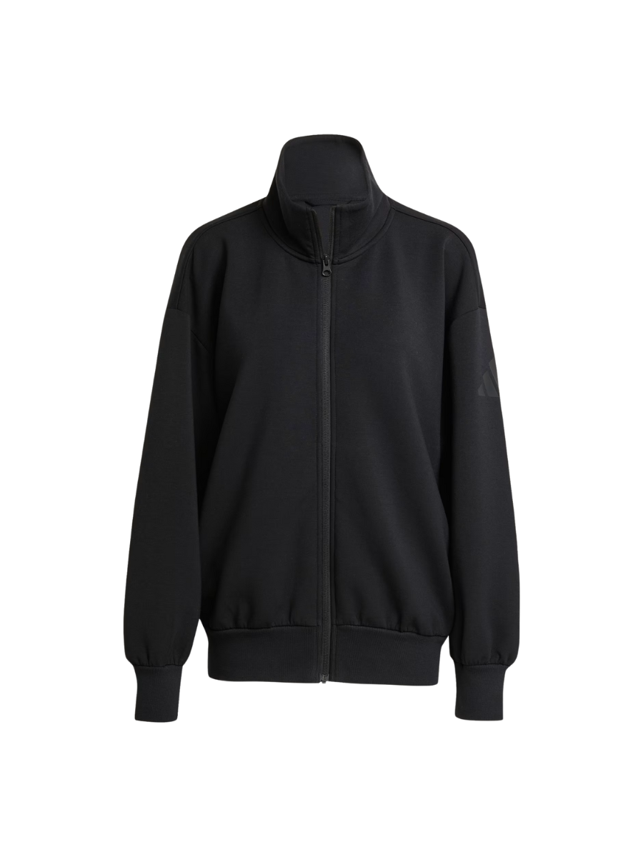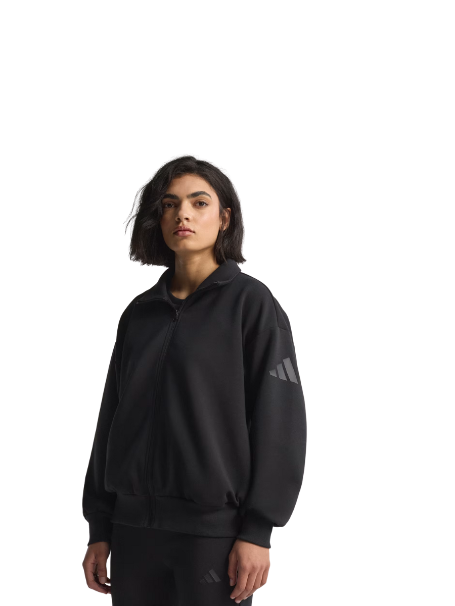 This adidas full-zip top is made from soft peached fabric for a cosy feel. The loose shape and extended length make it the perfect layering piece for a leisurely, laid-back look. A stand-up collar and front zipper let you adjust the coverage as you go about your day.