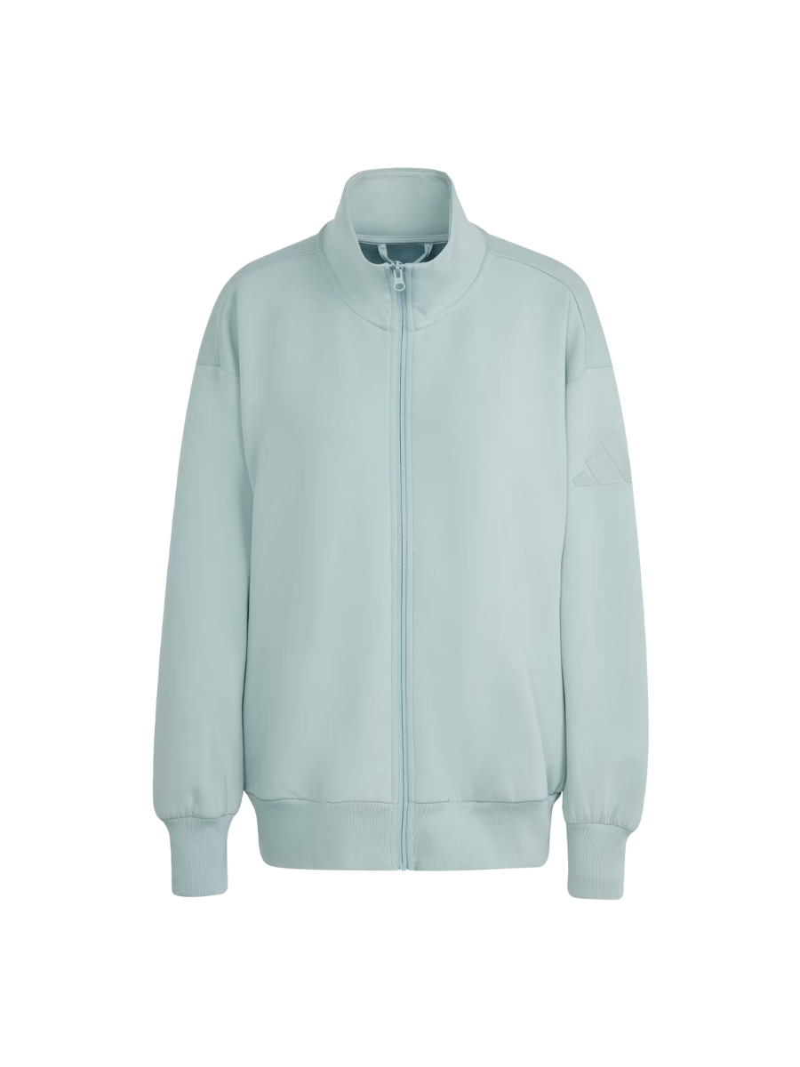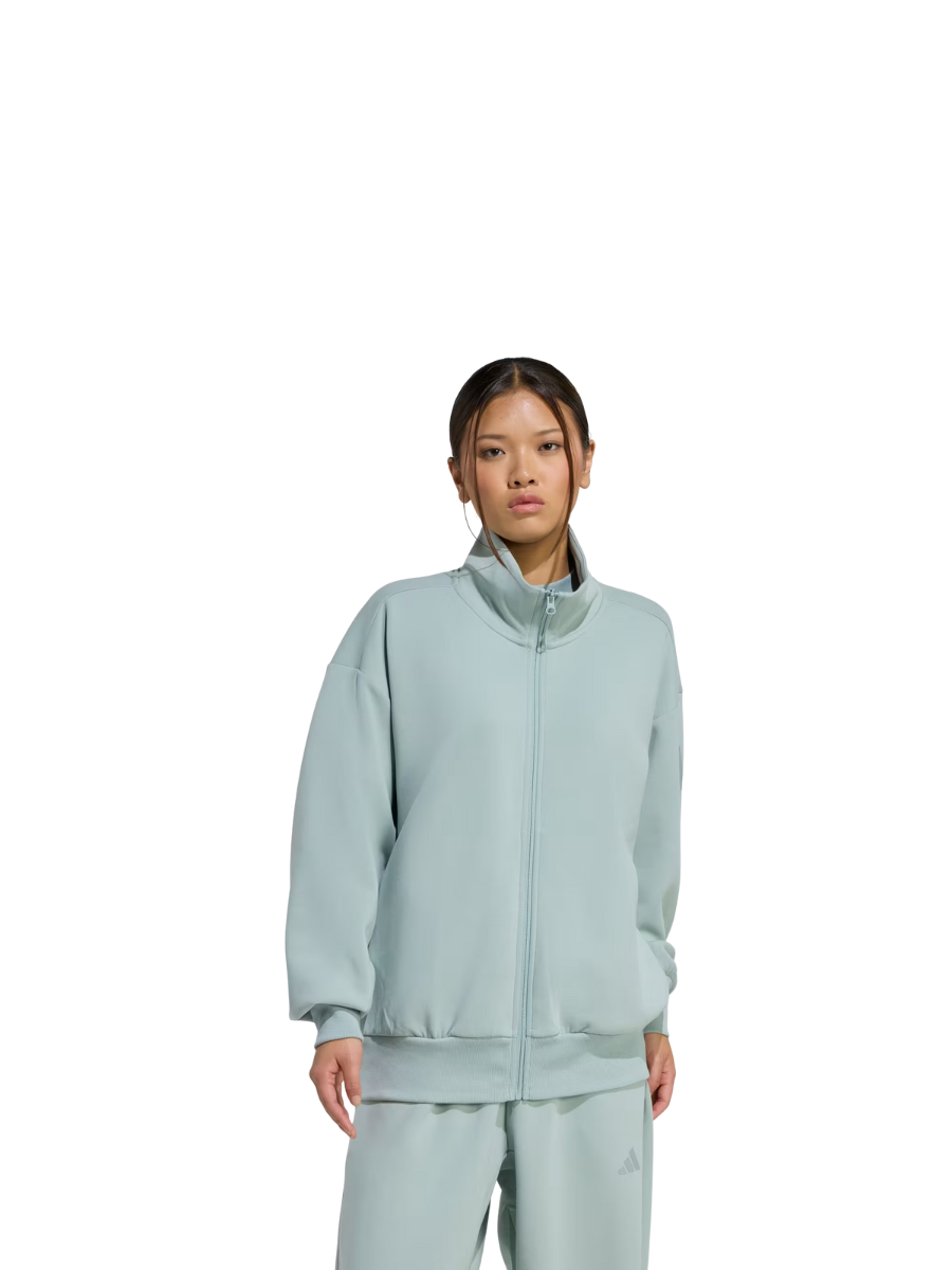 This adidas full-zip top is made from soft peached fabric for a cosy feel. The loose shape and extended length make it the perfect layering piece for a leisurely, laid-back look. A stand-up collar and front zipper let you adjust the coverage as you go about your day.