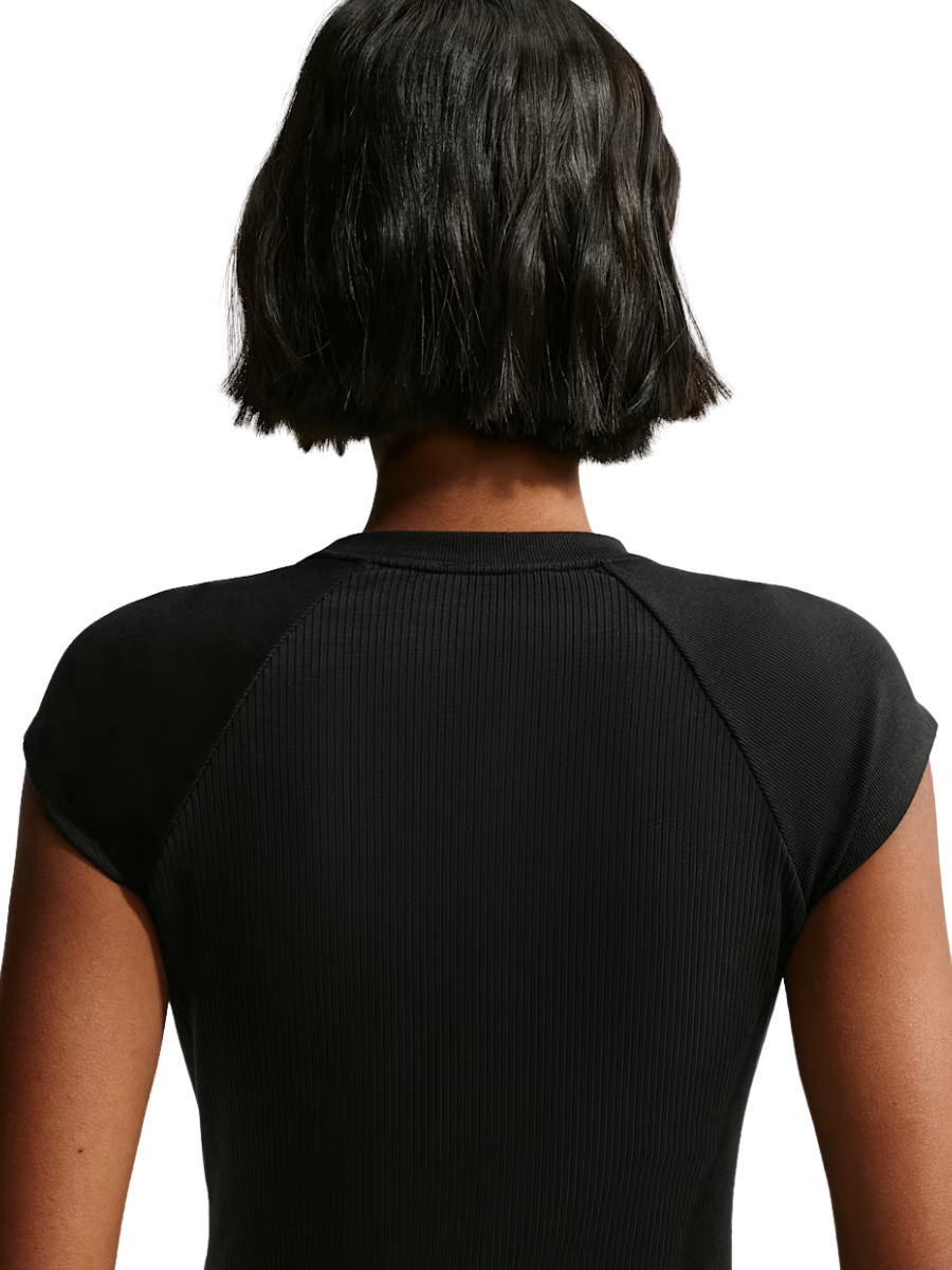 This top is crafted with our soft, mini-ribbed jersey fabric that’s stretchy with a slight drape, making it perfect for everyday wear. A mini rib at the raglan sleeves and neckline is paired with a wider rib through the body to add dimension to your look. Its tight fit has a body-skimming effect.